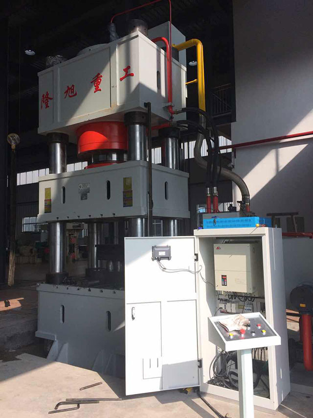 Hydraulic Drawing Press 1、Be applicable to all stretching, bending, forming, feeding, blanking, flanging and other processes. 2、With structure design optimized by computer, the four-columnstructure is simple, economical and practical; the frame type structure has good rigidity, high accuracy and strong anti-deviation capacity. 3、The hydraulic control system adopts plug-inintegrated systemwith reliable operation, long service life, small hydraulic shock, reducing connecting pipe and leakage point. 4、The electric system is controlled by PLC, which is of compact structure, agility, reliability and flexibility. 5、The operation panel selectioncan not only realize two kinds of forming processes of constant control and pressure control, but also three processes cycle with pad, on-pad and ejection. Technical parameter: