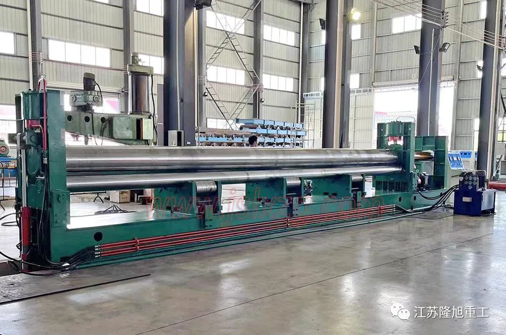 該卷板機屬于液壓型三輥卷板機,上輥可以通過液壓傳動垂直升降。下輥由電機、減速機帶動進行卷圓。由于下輥的標高不變,所以便于進料和操作。設備采用PLC可編程顯示器控制,運行平穩(wěn)、靈活,無卡阻。該設備輥面還采用了鍍鉻工藝,更適合卷制不銹鋼罐體。